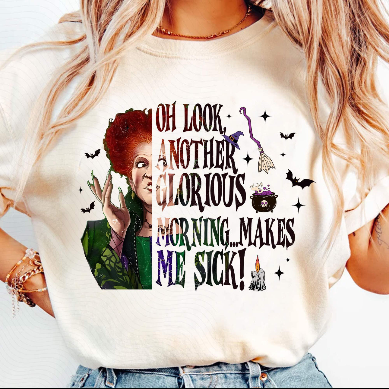 Get ready to start your day with a bit of magic in this Another Glorious Morning T-Shirt featuring Winifred Sanderson from Hocus Pocus. Embrace the enchantment and show off your love for this iconic movie. Perfect for any fan looking to add some whimsy to their wardrobe.
