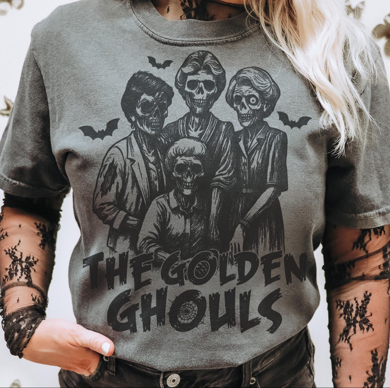 Unleash your inner ghoul with this Golden Ghouls T-shirt! Featuring your favourite gals in a spooky new light, this shirt is sure to turn heads. So whether you're a fan of the iconic sitcom or just love the macabre, this shirt is perfect for showing off your unique sense of style.