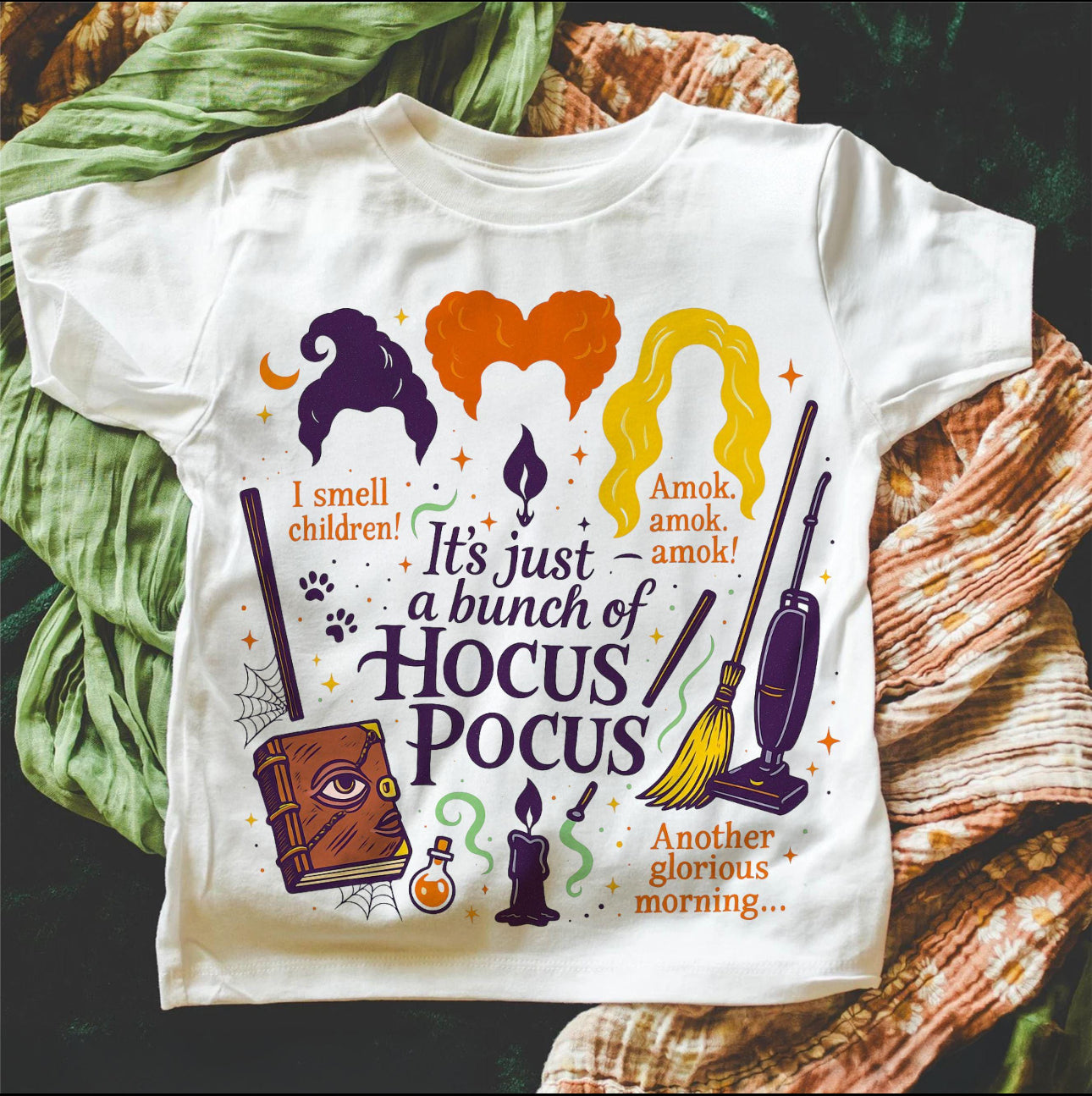 Abracadabra! This t-shirt is bewitching with its print from the cult classic Hocus Pocus movie. Perfect for fans of magic and mischief, this tee will grant a stylish look while paying homage to the beloved film. It's like having a spell cast on your wardrobe!