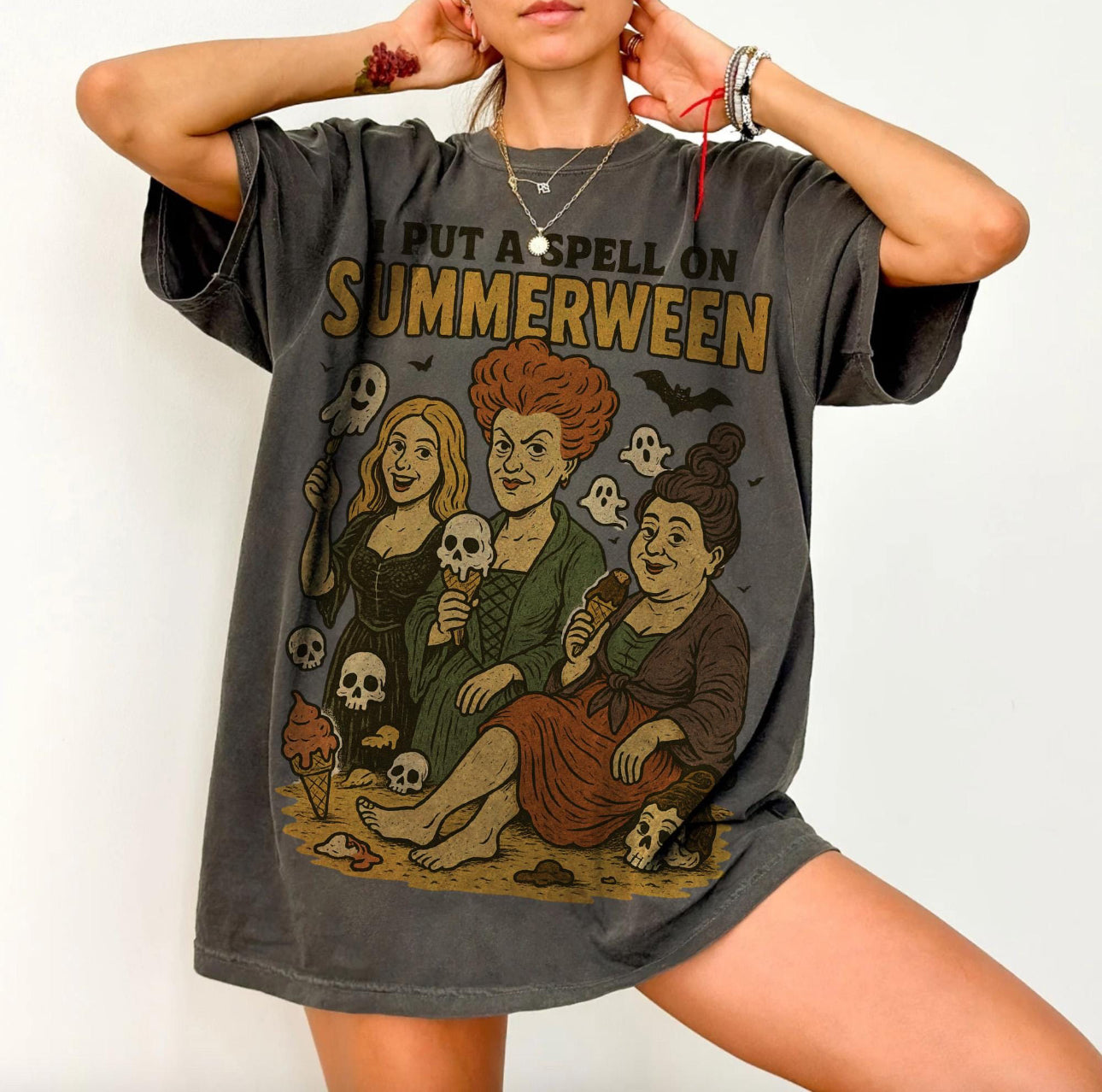 Get ready to put a spell on your summer wardrobe with this Hocus Pocus movie t-shirt. Say boo-yah to summer fashion with this quirky and fun tee that is perfect for any fan of the cult classic film. Look wickedly stylish all summer long with this must-have t-shirt.