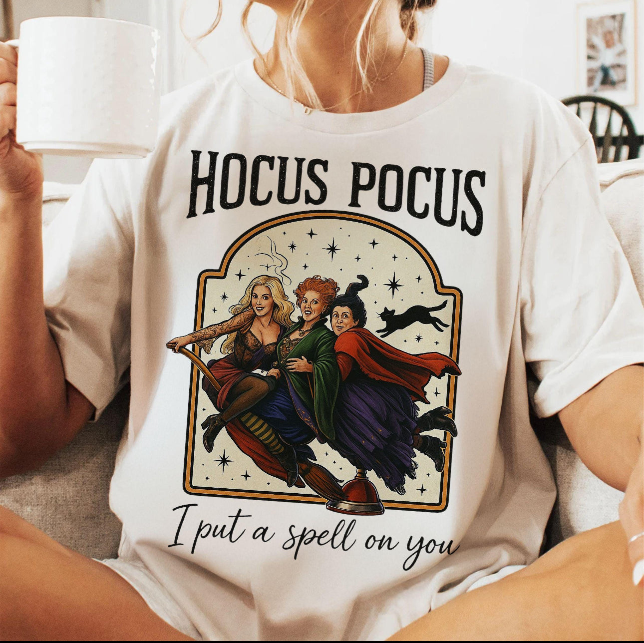 Get ready to cast a style spell with our "I Put A Spell On You" t-shirt! Featuring a playful reference to the cult classic film Hocus Pocus, this shirt is a must-have for any fan. Perfect for Halloween or everyday wear, this shirt will put a smile on your face (and maybe even a spell on your wardrobe!).