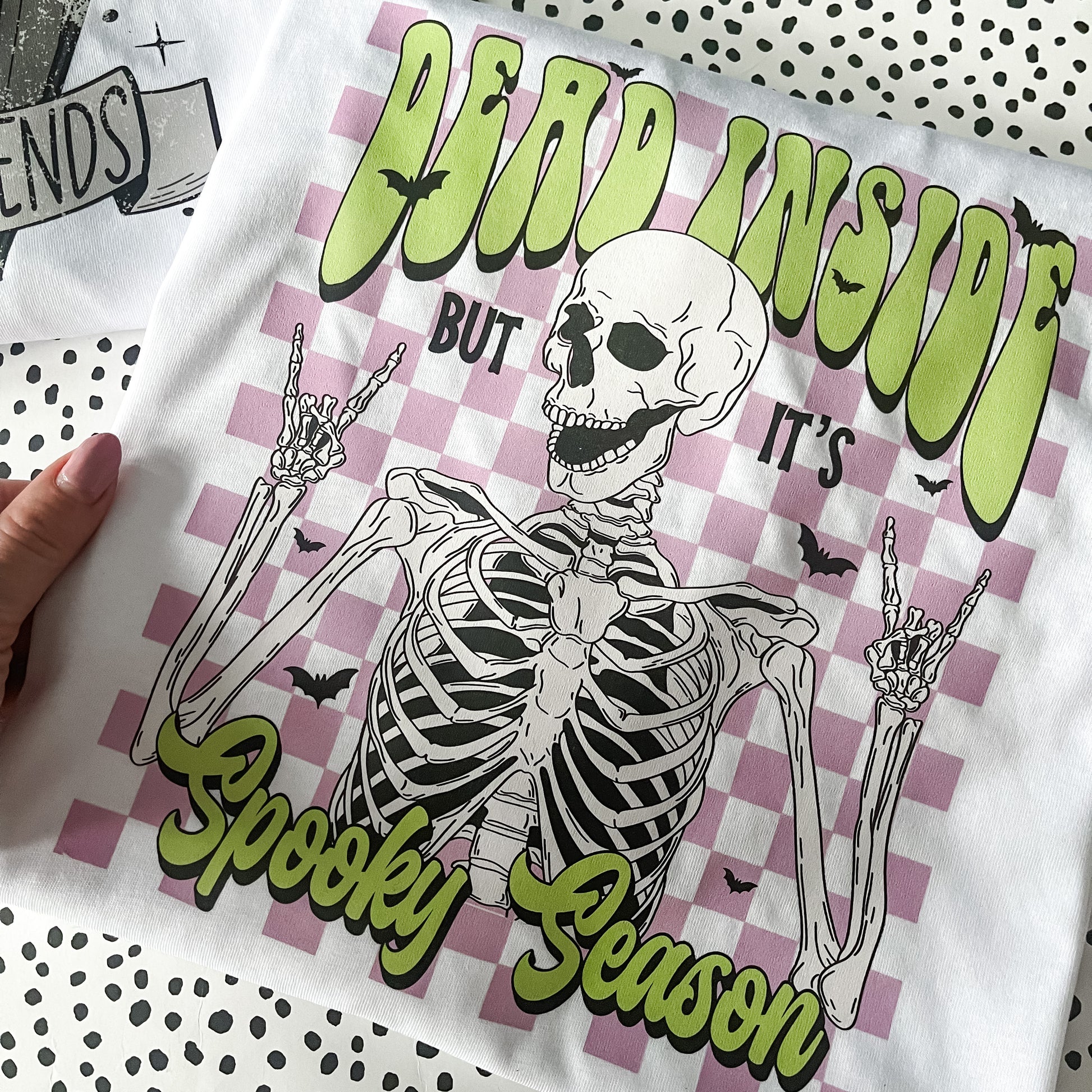 Get in the mood for Halloween with our Dead Inside But It's Spooky Season T-Shirt. Embrace your inner emo and gothic vibes this spooky summer. Perfect for anyone who feels dead inside but still wants to celebrate the spooky season.