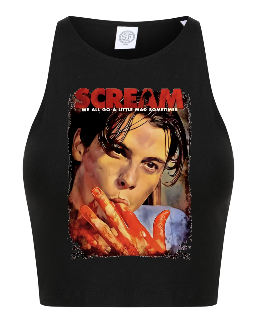 Unleash your inner Billy Loomis with our scream-worthy crop vest. This alt vest will keep you cool all summer long while bringing a touch of horror to your fashion game. Don't scream, just add it to your wardrobe!
